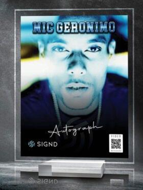 Get this one of a kind exclusive SIGND collectible item from Mic Geronimo. Delivered in our custom SIGND box, imagine the excitement when you open it to reveal this gift. Adding to the experience is the addition of a unique QR code that, when scanned, displays a personalized video for the recipient. Your experience is forever immortalized and attached with the memorabilia.